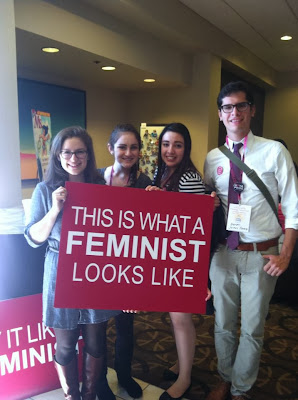 Poor guy. I always feel a little bit bad for guys like this. You see them at things like pro-abortion rallies or feminist rallies (Wait, is that redundant?) Like this guy at feminist conference.