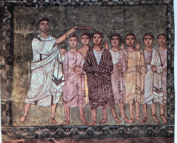Here at NLM we have often shown images and art from the early Christian period, but I thought it might be interesting to show you some images from what is said to be one of the oldest surviving synagogues; the Dura-Europos Synagogue. It is located in Syria and is dated to A.D. 244. It was discovered in the 1930's during excavations and was found remarkably well preserved, buried as it was -- much like the ruins of Pompeii.