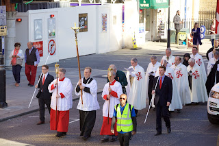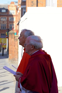 Later was the annual procession from Farm Street Church to St James's Spanish Place. On the way the procession stopped at the Ukrainian Catholic Cathedral where these photographs were taken. The Archbishop of Westminster, Cardinal Vincent Nichols was present.