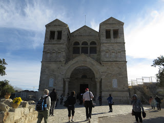 We began with mass at the site of the Transfiguration. There we heard the account of that wondrous event and heard anew the voice of the Father: "This is my beloved Son; listen to him." That listening is necessary, we know, but not always easy, because the voice of Jesus summons us to ever deeper conversion. That's the journey that lies before us as we descend from the mountaintop experience and return to our ordinary day-to-day living.From there, and following lunch (I love shawarma), we made our way to the place where Jesus multiplied the loaves and the fish. The church there is built over the rock held by Tradition to be the "table" on which the multiplication took place.