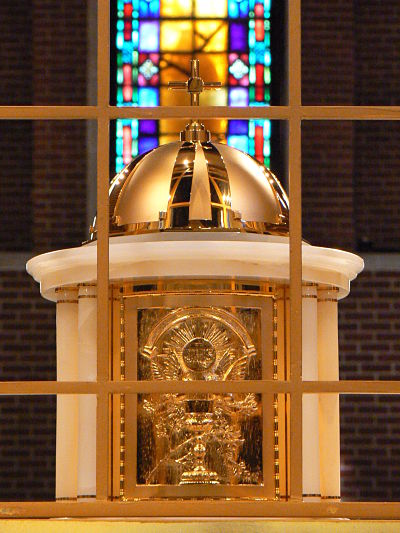 The Carmelite Monastery of Saint Thérèse in Loretto, Pennsylvania, in the Diocese of Altoona-Johnstown, recently received beautiful renovations to their public chapel and nun’s choir. Among the renovations  which were carried out under the patronage of Saint Joseph were a new altar, altar rail, and tabernacle. The monastery of Discalced Carmelite Nuns was founded in 1929 by Mother Marie Joseph from Bordeaux. Mr. Charles Schwab, the great steel magnate, provided many of the resources for it’s construction. Pauline, Mr. Schwab’s mother, had a great devotion to St. Thérèse and when Mother Marie Joseph, with her sense of humor, sent one of the community’s small statues of the Saint, via taxi to the Schwab’s estate with the note “I need a new home,” Pauline was completely captivated. Her son, Charles, soon oversaw the building of the new Carmel on land offered by the Franciscan T.O.R. Fathers. The Monastery in Lisieux served as inspiration during the building of the Loretto Monastery. Loretto was founded in 1799 by the Russian Prince, (Servant of God) Father Demetrius Augustine Gallitzin (1770-1840). (This description and the accompanying photographs were sent to us by Mr Jordan Hainsey, with our thanks!)