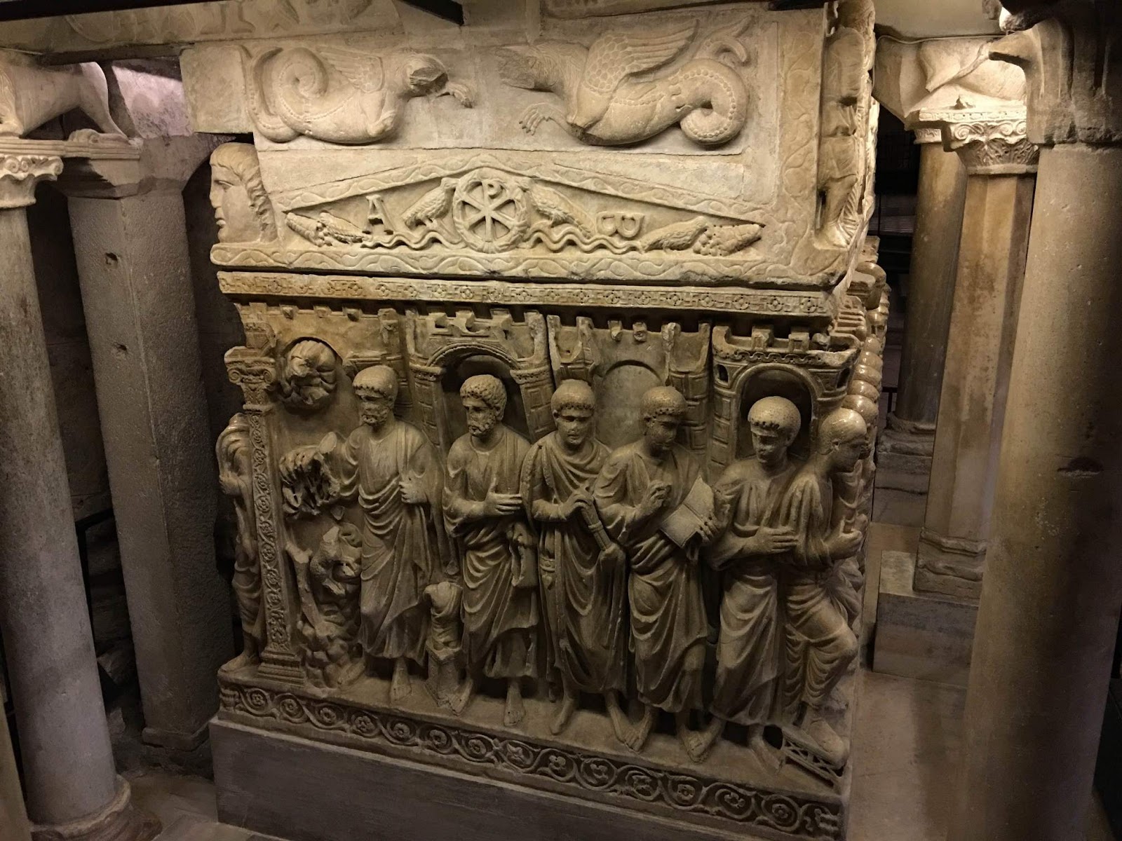 Under an ambo in the nave is a large sarcophagus of the later 4th century, traditionally called the Sarcophagus of Silicho, a Roman general who died in 408 A.D. On this side, a young and beardless Christ is represented on a throne surrounded by the Apostles.