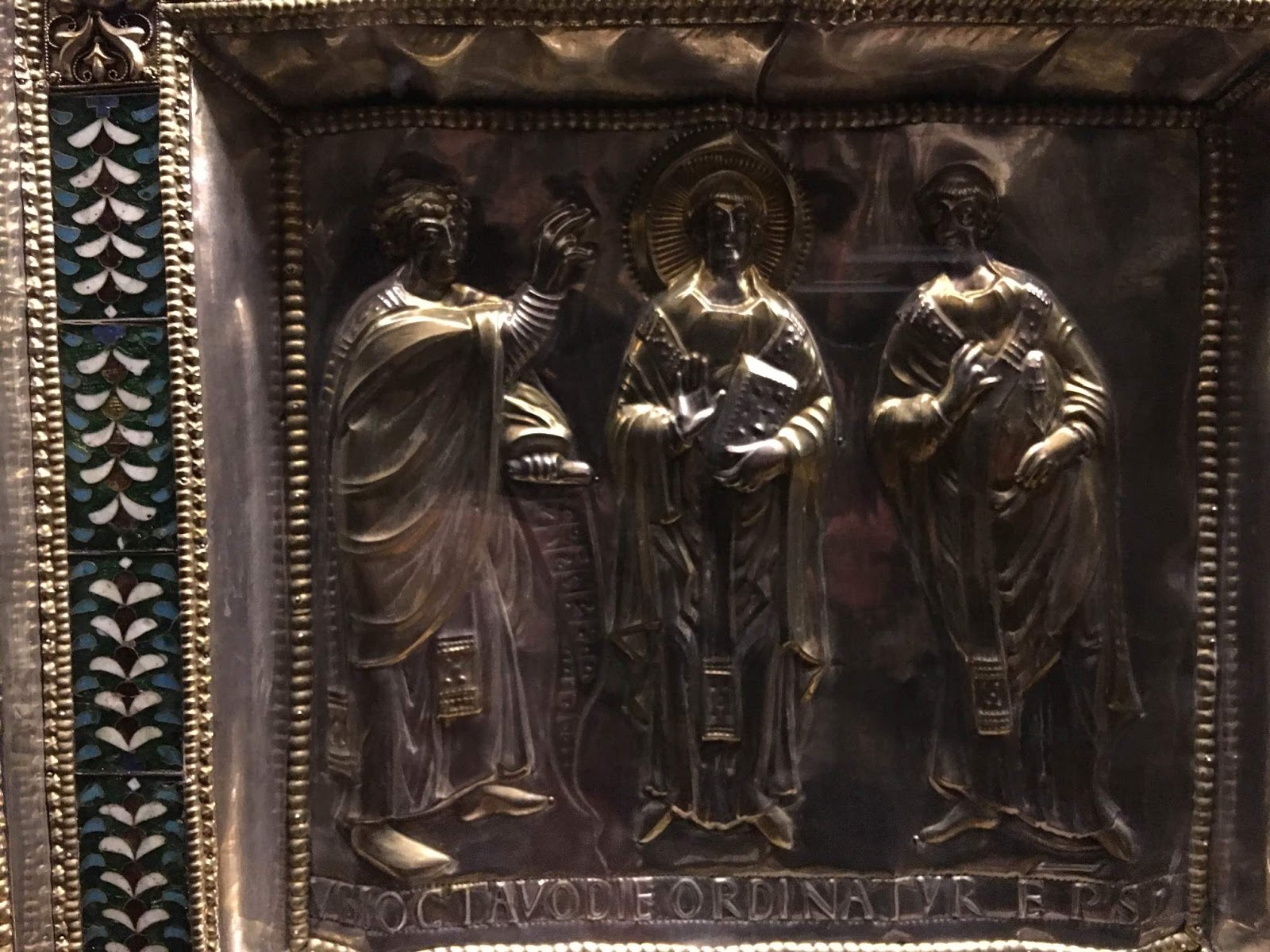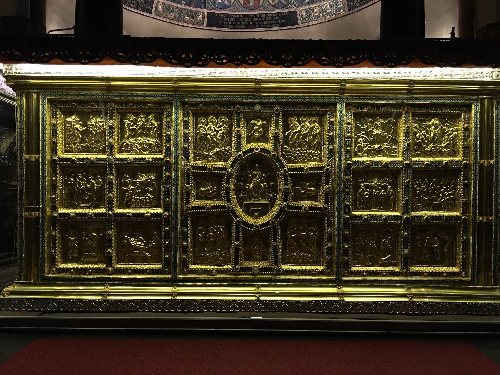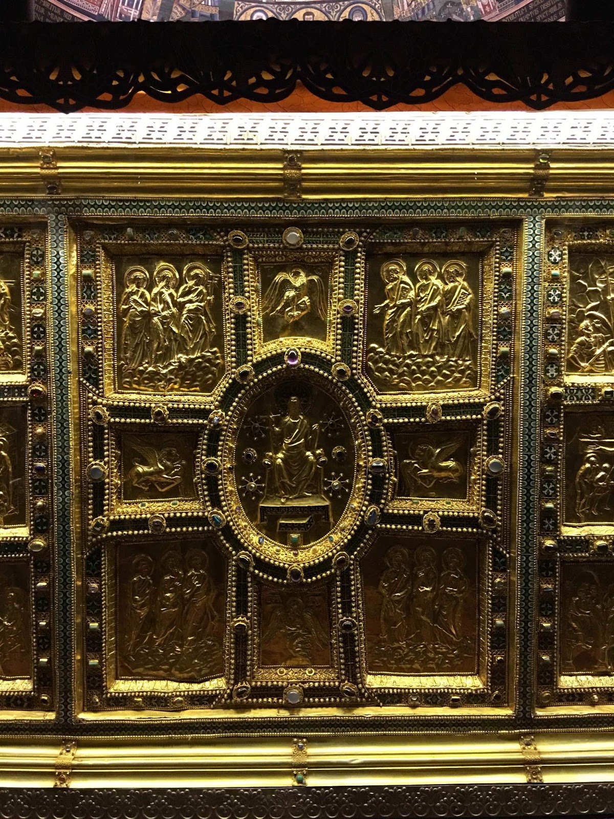 The altar was made between 825 and 859 by a sculptor named Vuolvino; the side facing the people is gold, that facing the apse is silver.