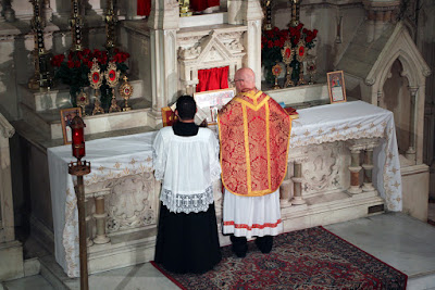 Here is the second part of our Pentecost photopost, as always, with our thanks to the readers who sent them in. Church of the Nativity of the Virgin Mary - Legnano, ItalyMass in the Ambrosian Rite; as a side note, the Ambrosian Rite uses red as the liturgical color of the season after Pentecost, (even including the feast of Corpus Christi), as did many medieval Uses of the Roman Rite. (From the website www.ambrosianeum.net.)