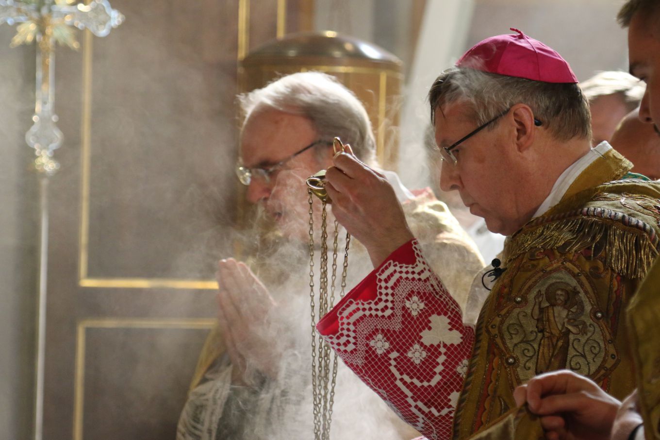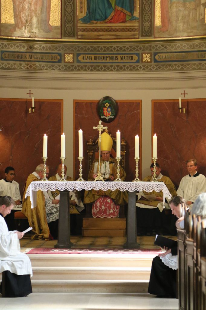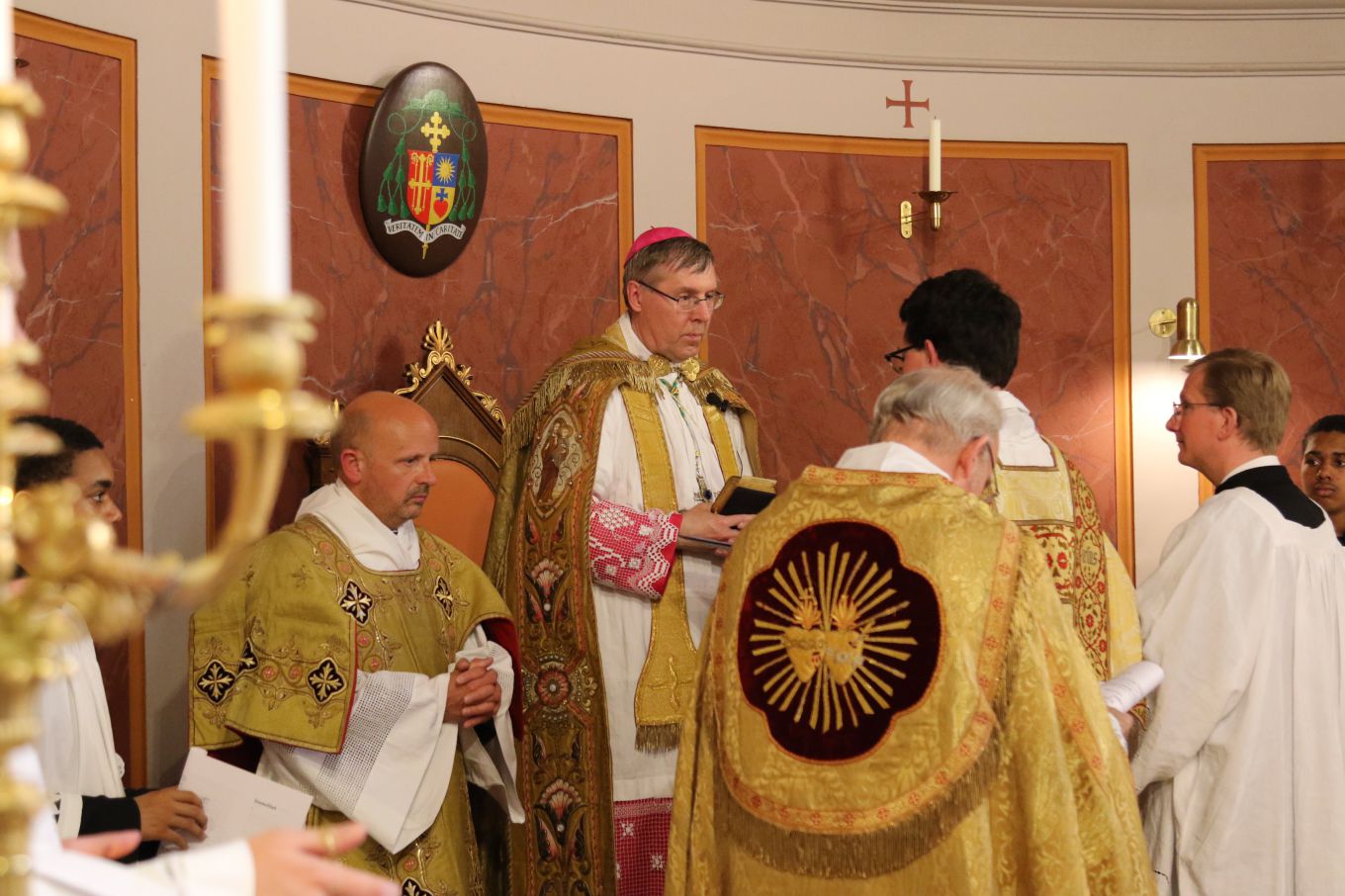 On May 7, Solemn Pontifical Vespers in the usus antiquior were celebrated for the first time in Scandinavia since the liturgical reforms. Bishop Czeslaw Kozon of Copenhagen celebrated First Vespers for Sunday after the Ascension in the Catholic cathedral of St. Ansgar. The Gregorian proper chants were sung together with a polyphonic setting of the Magnificat by Tomas Luis de Victoria. Clergy from the diocese assisted together with visiting priests.Remarkably, the Vespers were part of the religious and cultural festival “Danish Ecclesial Days,” held every third year. Originally an event of the Danish Lutheran State Church, this year other denominations have been involved. It was the Catholic representative to the organizing committee, a permanent deacon, who asked the St. Charles Borromeo Group (which organizes the TLM in Copenhagen) to arrange for this celebration of Vespers; he himself served as Assistant Deacon. The cathedral was open for prayer and Eucharistic adoration throughout the three-day event.Mgr. Kozon has been very supportive of the older liturgical use and will celebrate an EF Solemn Pontifical Mass and confer Confirmation in St. Augustine’s Church, Copenhagen, on June 25. Thank you, Your Excellency!