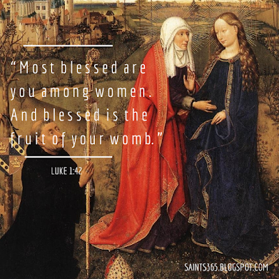 -1-Put a little pep in your step. Luke's account of the Visitation opens with the following line: "During those days Mary set out and traveled to the hill country in haste..." (Luke 1:39). The phrase that always jumps off the page at me is "in haste". Mary went in haste to be of service to her cousin, Elizabeth, whom she had just found out was pregnant in her old age.Let's consider a few things here: First, Mary is pregnant. Second, she didn't jump in her SUV, stop at Dunkin Donuts for an Iced Coffee on the way and arrive a few hours later. More than likely she walked....over the hills....for hours, if not days. Third, Mary is pregnant. Ooops, I said that already....might be because I never did anything in haste when I was pregnant. In actuality, I don't do much in haste when I am not pregnant.What is the lesson here? Mary was ready and willing to quickly provide service someone in need. She hopped right to it. She didn't agonize over it, check her calendar, weigh the pros and cons, or pause to consider what might be in it for her - she went in haste to help. It's a lesson that I, for one, am not learning in haste. Each time I hear this scripture I am more and more convicted that my attitude towards helping others needs to be far more like Mary's and for that to happen, I need to ask the Lord to fill me with the Holy Spirit, just like Mary was.-2-Service requires sacrifice.We live in an instant-gratification culture. Watching the microwave tick down the last 30 seconds of cooking the four minute frozen dinner, often leaves me impatiently tapping my fingers on the counter. Yet, most things in life don't happen in an instant -and people's real needs are rarely met in the span of a 20 minute sitcom. St. Luke tells us that Mary's visit to Elizabeth lasted for three months. (Luke 1:56) Mary was willing to make the sacrifice necessary to help meet Elizabeth's needs. True Christian service requires a heart open to sacrifice and an attitude of putting other's needs before our own.Becoming a Mom for the first time drove home this lesson with me. The nine months of of pregnancy required a self-sacrificing patience like few other experiences in my life before or since (with the possible exception of potty-training). No matter how much I desired to rush the process, the child in my womb required my constant, day-in, day-out sacrifice in ways that I had never though possible. Like Elizabeth, my pregnancy also found me needing the service of others to assist me in performing the tasks that my growing belly left me unable to do on my own. This experience of both giving and receiving long-term sacrificial service led me to see the blessings of a life lived for others, a life like Mary's.-3-The Holy Spirit helps us recognize Jesus.The scriptures tell us: "When Elizabeth heard Mary’s greeting, the infant leaped in her womb, and Elizabeth, filled with the holy Spirit, cried out in a loud voice and said, “Most blessed are you among women, and blessed is the fruit of your womb. And how does this happen to me, that the mother of my Lord should come to me? (Luke 1:41-43)Because Elizabeth was filled with the Holy Spirit, she was able to recognize the presence of Jesus in the womb of Mary and proclaim those beautiful words that we recite in every Hail Mary. St. Paul tells us "No one can say, “Jesus is Lord,” except by the holy Spirit." (1 Cor 12:3) It is the Holy Spirit who enables us to recognize the Lord Jesus, even when he is hidden from our senses, as he was from Elizabeth. We must daily ask the Holy Spirit to fill us, as he filled her, so that we too are able to recognize Jesus in others whom we meet. -4-There is joy in encountering the Lord.It is an unmistakable feeling when your unborn child makes a sudden move in your womb. For me, it was just a delight to feel my babies flip, dance and kick inside of me. I wondered what caused these movements - what were they thinking or sensing from me inside the darkness of the womb. Luke tells us that John the Baptist "leaped for joy" in Elizabeth's womb at the sound of Mary's voice (Luke 1:44).Pope John Paul II calls the mystery of the Visitation a "mystery of joy". He says: