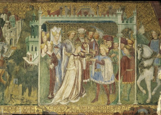 The Life of Theodelinda: Authari seeks a wife from the King of the Franks and is refused; his emissaries seeks the hand of Theodelinda from her father, the Duke of Bavaria; she comes to Italy; in the lowest part (after the death of Authari), she sends messengers to the duke of Turin, Agilulf, choosing him as Authari’s successor.