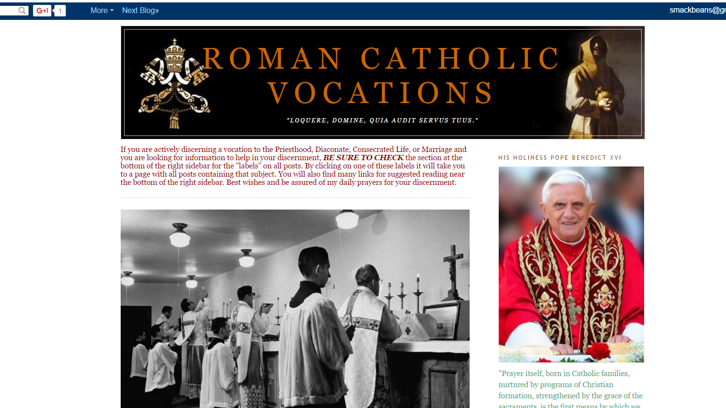 Although it has not published in several years, January's blog of note is Roman Catholic Vocations. Prior to the internet, deciding on which religious order to enter, for those called, was decidedly more serendipitous, if not almost entirely providential. While God has always chosen those he wills, the notion of entering one religious community over the next was owed more to immediate experience, personal encounters or geography than inclination, although the later played a role. At least, this was the case among the religious of previous generations. Modern technology allows current day discerners to simply serf for the best fit.Whether you feel called to be a cloistered nun or a mendicant brother, a diocesan priest or to marriage, Roman Catholic Vocations has something to offer. Faithful to the Magisterium, it's content features prayers, reflections, countless men's and women's religious vocation links and videos. From below the website's masthead:"If you are actively discerning a vocation to the Priesthood, Diaconate, Consecrated Life, or Marriage and you are looking for information to help in your discernment, be sure to check the section at the bottom of the right sidebar for the 'labels' on all posts. By clicking on one of these labels it will take you to a page with all posts containing that subject. You will also find many links for suggested reading near the bottom of the right sidebar. ..."Here is an excerpt from Pope Benedict XVI’s message for the 48th World Day of Prayer for Vocations: "Particularly in these times, when the voice of the Lord seems to be drowned out by ‘other voices’ and His invitation to follow Him by the gift of one’s own life may seem too difficult, every Christian community, every member of the Church, needs consciously to feel responsibility for promoting vocations. It is important to encourage and support those who show clear signs of a call to priestly life and religious consecration, and to enable hem to feel the warmth of the whole community as they respond ‘yes’ to God and the Church..."