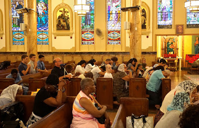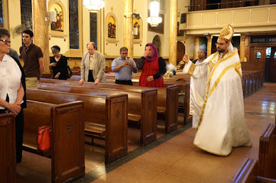 Our thanks to one of our regular photopost contributors, Diane Yuan, for these images of a Coptic liturgy celebrated at the Pontifical Shrine of Our Lady of Mount Carmel in New York City, by Abouna (Fr) Francis Fayez of the Coptic Catholic Church of the Resurrection in Brooklyn. The Coptic clergy and faithful guided the congregation in participating in their beautiful Rite, which was followed by a blessing of the sick. This liturgy at Mt. Carmel is a part of the Pallottine tradition of presenting Eastern Catholic liturgies.Let us remember to pray for the many Christians who are subject to persecution in the land where Our Lord found refuge when He was subject to persecution!