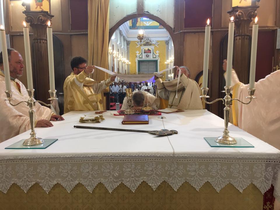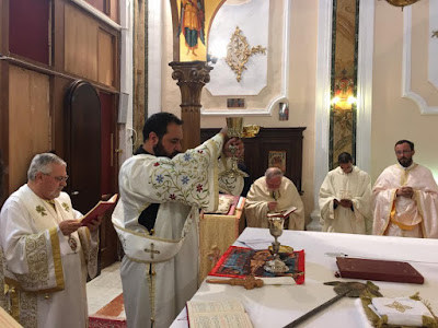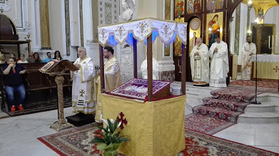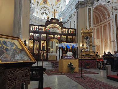 Sanctuary of Santa Maria della Grazia - Palazzo Adriano, SicilyThis is one of the churches of the Greek-Catholic Albanian community in Sicily, which has its Eparchy at Piana degli Albanesi. On the August 13th, the Sunday before Assumption, the eparch, H.E Giorgio Gallaro, installed the new parish priest; a shroud representing of the Dormition of the Virgin is already set up in the church for the upcoming feast.
