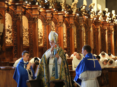 Heiligenkreuz Abbey - Lower AustriaPontifical First Vespers celebrated by the Abbot. (Photos courtesy of Fr Edmund Waldstein O. Cist., from his blog Sancrucensis.)