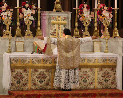 Cathedral of St Eugene - Santa Rosa, CaliforniaFr Jeffrey Keyes, who sends in the much-liked photos of the designs made from amice ties, blessed a new Marian vestment before celebrating the EF Mass of the Assumption.
